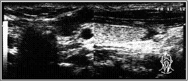 Реферат: Метод склеротерапии в лечении доброкачественной кистозно-узловой патологии щитовидной железыРеферат: Метод склеротерапии в лечении доброкачественной кистозно-узловой патологии щитовидной железыМетод склеротерапии в лечении доброкачественной кистозно-узловой патологии щитовидной железы Ильин А. А., Терентьев Р. О., Марченко Е. В., Румянцев П. О., Цодикова Л. Б., Медведев В. С., Медицинский радиологический научный центр РАМН, г. Обнинск. Выбор оптимальной тактики лечения узлового зоба представляет для эндокринологов достаточно сложную проблему, в связи с ограниченным кругом возможных лечебных манипуляций, и сравнительно невысокой их эффективностью. В настоящий момент при лечении этой весьма распространенной патологии ЩЖ наиболее часто используются супрессивная терапия тиреоидными гормонами и хирургическое лечение. Оба этих метода имеют ряд весьма существенных ограничений и недостатков. В МРНЦ РАМН разработан и апробирован новый метод лечения доброкачественной узловой патологии ЩЖ, позволяющий в ряде случае избежать хирургического вмешательства. Он основан на комплексном подходе к лечению узлового зоба и сочетает в себе общее воздействие на зобно трансформированную ткань щитовидной железы с использованием супрессивной терапии тиреоидными гормонами и локальное воздействие на узловое образование (кисту или узел с кистозной дегенерацией) при помощи склеротерапии. Склеротерапия осуществляется под ультразвуковым контролем, по оригинальной методике, путем пункции узлового образования и введения в него склерозирующего препарата. В качестве склерозирующего агента используется 96% этиловый спирт. Наибольший интерес данная работа представляет для врачей эндокринологов, хирургов-тиреоидологов и специалистов ультразвуковой диагностики. Введение Среди новообразований щитовидной железы (ЩЖ) значительный процент составляют образования неопухолевой природы (узлы). Многие из этих образований имеют кистозные изменения. Приблизительно у 25% из них кистозная дегенерация занимает большую часть узла либо полностью замещает его. Применение супрессивной терапии тироксином далеко не у всех больных этой группы позволяет добиться положительного эффекта, что зачастую вынуждает прибегать к оперативному вмешательству. Аспирация кистозного содержимого, выполняемая при тонкоигольной биопсии, малоэффективна в связи с повторным накоплением жидкостного компонента. В случае хирургического лечения помимо анестезиологического риска, опасности повреждения возвратного нерва и возникновения гипотиреоза и гипопаратиреоза, высока вероятность развития рецидива заболевания. В то же время ряд авторов сообщает о возможности успешного лечения кистозных изменений ЩЖ с использованием малоинвазивного метода – склеротерапии. В качестве склерозирующего вещества чаще всего используется 96% этиловый спирт. Механизм его воздействия связан с развитием внутри кисты коагуляционного некроза и локального либо полного тромбоза мелких сосудов, с последующим фиброзированием. В то же время сочетание склеротерапии, как элемента лечения локального процесса (узла щитовидной железы) с лечением зоба с использованием тиреоидных гормонов позволяет повысить эффективность терапии и предотвращает развитие рецидива заболевания. Таким обра