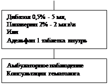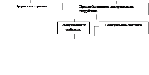 Адреналин. Установлено, что при анафилактических реакциях и шоке наиболее эффективным препаратом и препаратом выбора является адреналин, который следует вводить немедленно при развитии анафилаксии. При этом необходимо помнить, что адреналин способен провоцировать нарушения ритма сердца, особенно в условиях гипоксии и ацидоза. С другой стороны, он обладает многими свойствами, превосходящими потенциальный риск развития побочных эффектов в неотложной ситуации. Целесообразность введения адреналина определяется следующим: 1) благодаря бетта-адренергическому эффекту он подавляет высвобождение медиаторов (вазоактивных аминов) из большинства клеток и дегрануляцию базофилов, что предотвращает дальнейшее прогрессирование анафилактической реакции: 2) вследствие альфа-адренергического действия он вызывает вазоконстрикцию; 3) в результате стимуляции бетта-адреналитических рецепторов он обеспечивает бронходилатацию. Для эффективного лечения необходимо использовать в\венный путь введения препарата. При менее тяжелых реакциях, особенно если помощь оказывается не врачами, предпочтительнее подкожное или внутримышечное введение адреналина. Ингибиторы фосфодиэстеразы. Эуфиллин (теофиллин, аминофиллин) применяются у больных с бронхоспазмом, рефрактерным к действию адреналина. Ксантины на клеточном уровне подавляют фосфодиэстеразу, что приводит к повышению цАМФ* и таким образом предотвращается выброс первичных медиаторов. Они являются также сильными бронходилататорами, но могут вызвать гипотонию вследствие снижения периферического сосудистого сопротивления. Обычно вводят эуфиллин медленно каждые 8 часов. Антигистаминные препараты. Антигистаминные препараты являются конкурентными ингибиторами гистамина на клеточном уровне в органах-мишенях. Наиболее показано введение антигистаминных препаратов при кожных реакциях, сопровождающихся крапивницей, зудом, ангионевротическим отеком. Для получения полного эффекта следует применять комбинацию блокаторов Н1 и Н2-рецепторов. Кортикостероиды. Кортикостероиды широко применяют при лечении анафилактических реакций и шоке, хотя в основном их эффекты развиваются замедленно. Кортикостероиды тормозят разрушение фосфолипидов клеточной мембраны, подавляют активизацию фосфолипазы А2, усиливают действие бетта-адренергетических средств на мембраны тучных клеток и снижают проницаемость капилляров. Внедрение гормонов не считается средством первой помощи, но их применение показано в целях борьбы со стойкой дисфункцией органов, а также для ослабления вторичных явлений (запаздывающих реакций). * цАМФ циклический 3’:5’ – аденозинмонофосфат. СХЕМА ПРОВЕДЕНИЯ ЛЕЧЕБНЫХ МЕРОПРИЯТИЙПРИ АНАФИЛАКТИЧЕСКОМ ШОКЕ