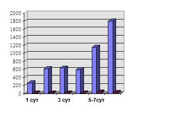 В группе больных с благоприятным исходом (см. таблицу) объем застойной жидкости достигает пика на 2-3-й день приступа и не превышает 600-800мл в сутки. С 4-5-го дня он уменьшается до 300-400 мл и менее. В группе больных с неблагоприятным исходом панкреонекроза объем содержимого желудка нередко уже на 2-3-й день превышает 1000мл. В последующие дни объем застойного желудочного содержимого увеличивается в 2-3 раза/2/. ........ Этот простой прием позволяет уже в первые дни заболевания хотя бы ориентировочно выделить группу больных с прогностически неблагоприятным течением заболевания и соответственно корригировать лечение. IV.Гемодинамические расстройства при остром панкреатите обстоятельно изучены с помощью специальных инструментальных методик. В условиях неотложной диагностики деструктивного панкреатита ориентировочную оценку гемодинамики можно провести по состоянию пульса, периферической микроциркуляции, артериального и центрального венозного давления/2/. Тахикардия при формировании панкреонекроза возникает с первых часов болевого приступа. В первые сутки она имеется у 67% больных (120-130 ударов в минуту), (при геморрагическом панкреатите - у 49,3%, при жировом панкреонекрозе - у 71,4%). На 2-3 сутки количество таких больных увеличивается до 81,5%/2/. Систолическое артериальное давление (САД) в первые дни формирования деструктивных форм панкреатита характеризуется тремя вариантами: гипертоническим, нормотоническим и гипотоническим. Среди верифицированных наблюдений в ранние сроки преобладали гипертонический и нормотонический варианты/2/. Анализ верифицированных наблюдений показал, что степень гемодинамических расстройств во многом соответствует общей тенденции развития деструктивного панкреатита/2/. У 19,1% больных с верифицированным диагнозом панкреонекроза подъем САД достигал 250/100 мм рт. ст. и удерживался в течении 7-8 дней. Развитие подобного «гипертонического криза» является одним из клинических признаков формирования панкреонекроза с прогрессированием деструктивных изменений. На секции в таких случаях имеются обширные поражения поджелудочной железы и забрюшинной клетчатки. Патологоанатомические исследования показали, что уже в первые 4-5 дней деструктивные изменения (очаги жирового некроза, кровоизлияния, очаги некроза) имеются в параадреналиновой клетчатке и в паренхиме надпочечников. Это позволяет связать возникновение гипертонического криза в первые дни формирования панкреонекроза не только с рефлекторными реакциями на боль и воспаление, но и с распространением зоны деструктивных изменений на параадреналовую клетчатку, надпочечники и другие отделы забрюшинной клетчатки. Артериальная гипертензия и «панкреатогенный гипертонический криз» чаще выявляются при жировом панкреонекрозе (52,1%) чем при геморрагическом (23,3%)/2/. Артериальная гипотензия чаще возникает при геморрагическом панкреонекрозе (60,7%), чем при жировом панкреонекрозе (11,1%)/2/. Нормотонический вариант гемодинамики в 1-е сутки формирования панкреонекроза отмечен у 37,4% больных с верифицированным диагнозом/2/. Изменения центрального венозного давления (ЦВД) в верифицированных наблюдениях панкреонекроза также имели тесную связь с клиническим течением заболевания. Отрицательные или близкие к нулю показания ЦВД в первые 24 ч заболевания возникали на фоне обширных не