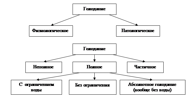 Реферат: Патофизиология голодаРеферат: Патофизиология голодаМакаров Семен Николаевич I. Введение Болезнь -- это способ, с помощью которого природа показывает, что ваш организм переполнен токсичными веществами и внутренними ядами. У мертвецов болезней не бывает. Проблемы возникают только, если вы живы. Голодая, вы помогаете природе выводить продукты распада и яды, накопившиеся в вашем теле. Это известно каждому дикому животному. Голодание -- единственный путь, который помогает животному преодолеть физические недуги, одолевающие его. Это чисто животный инстинкт. Мы, люди, так долго жили в условиях цивилизации, что утратили инстинкт: голодать в случае болезни. Вероятно, вы замечали, что при серьезной болезни вы не ощущаете никакого аппетита. Вы испытывает даже отвращение к пище. А заботливые, но некомпетентные родственники и друзья говорят: "Ешь, чтобы поддержать силы". В тот момент вы меньше всего нуждались в еде, ведь подсознание сигнализировало вам прекратить еду. Природа хотела, чтобы вы поголодали, дабы она могла спокойно потратить энергию для очищения организма. Тихий голос матери-природы трудно услышать и понять. При голодании ваши ощущения становятся очень острыми. Голодание обостряет разум, настраивает на чуткий голос природы. Я хорошо знаю, насколько лучше начинает работать голова после каждого периода голодания. Люди часто спрашивают меня устно и в письмах: "Сможет ли голодание вылечить меня от той или иной болезни?" Хочу быть четко и ясно понятым: я не рекомендую голодание как лекарство от болезней! Я не занимаюсь лечением. Я не верю ни в какие лекарства, кроме природы. Все, что мы можем сделать, это укрепить жизненные силы таким образом, чтобы лечение болезней стало сугубо внутренним делом самого организма. Я учу вас голодать, чтобы еще больше и больше укреплять ваши жизненные силы для преодоления слабости. П. Брэгг Истощается ли организм во время голодания? Этот вопрос тесно связан с другим вопросом: откуда наш организм получает питание? "Странный вопрос, - скажут многие, - конечно из пищи", и будут не совсем правы. Заметьте, речь идет не о человеке, а об организме. Так вот, наш организм всегда получает питание из собственных запасов, а эти запасы в свою очередь пополняются за счет пищи. Если бы наш организм получал питание только из пищи, то человек не смог бы обходиться без пищи дольше трех часов. Но это совершенно не соответствует действительности. На практике, должно пройти несколько недель полного голодания, пока организм истощит свои запасы. Иван Иванов. Кандидат биологических наук. 1. Определение голодания Голодание – это состояние, возникающее в тех случаях, когда организм не получает пищевых веществ совсем, или получает их в недостаточном количестве, или же не усваивает их вследствие болезни. II.2 Классификация Голодание по своему происхождению может быть физиологическим и патологически м. Физиологическое голодание периодически повторяется у некоторых видов животных в связи с особыми условиями их обитания или развития. Примером физиологического голодания является зимняя спячка у некоторых млекопитающих (сурки, суслики), рыб, пресмыкающихся. Наиболее широкое распространение имеет патологическое голодание. Различают голодание полное, неполное (количественное недоедание) и частичное (качественное). Полное голо