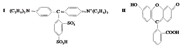 Представители этой группы – кислотный ярко-голубой З (I) и флюоресцин (II):
