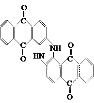 8. Кубовые полициклокетоновые красители. Молекулы их содержат несколько конденсированных ароматических колец и не менее двух карбонильных групп, атомы углерода обычно также принадлежат ароматическим ядрам. Представитель этой группы – кубовый синий O: