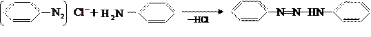 При нагревании в кислой среде до 35-38˚С оно превращается в азосоединение: