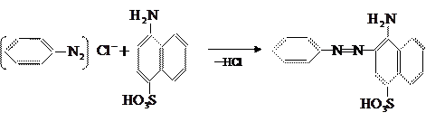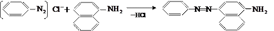 1–Нафтиламин в кислой среде сочетается преимущественно в положении 4: