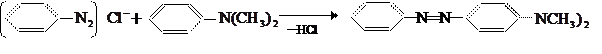 Легко вступает в реакцию сочетания алкилированные амины, например, диметил- и диэтиланилин: