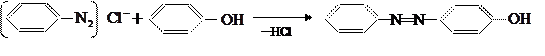 При сочетании диазосоединений с оксисоединениями нужна слабощелочная среда и температура от 0 до 10˚С. С фенолом сочетание идёт в параположение: