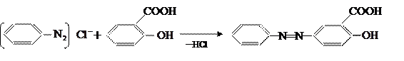 азосочетания полученной соли диазония с салициловой кислотой. После окончания