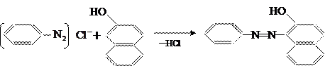 Он образуется в результате взаимодействия анилина с азотистой кислотой: Однако, катион арилдиазония является более слабым электрофилом по сравнению с такими реагентами, как +NO2 и способен успешно атаковать только очень реакционноспособные ароматические соединения, такие как фенолы и амины. Катионы диазония существуют только в кислой или слабощелочной среде, в сильнощелочном растворе они превращаются в кислоты. Поэтому реакция азосочетания может проводиться только в указанных условиях. Оптимальное значение pH зависит от свойств атакуемого соединения. В случае фенолов реакция лучше всего протекает в слабощелочной среде, поскольку образующийся фенолят-ион намного лучше атакуется, чем сам фенол из-за значительно более высокой электронной плотности. Ароматические амины, как правило, атакуется несколько труднее, чем фенолы, поэтому сочетание с ними чаще всего проводят в слабокислом растворе, что обеспечивает высокую концентрацию иона. Реакция азосочетания в общем виде: Если X= ─ Аммониевые ионы солей аминов ─NH3, ─NH2R, ─NHR2 и свободный фенол практически не атакуются, так как вследствие слабой электрофильности диазониевого иона он может атаковать углерод ароматического кольца лишь при значительном содействии со стороны заместителя. Такое содействие выражено в случае ─O и ─N(CH3)2: Очень медленно реакция идёт в случае фенола: 3.6. Продукты для холодного крашенияВо всех рассмотренных до сих пор примерах реакцию азосочетания вели в растворе, затем выделяли полученный краситель, фильтровали, высушивали и в готовом виде передавали на текстильные фабрики для крашения ткани. Существует и другой способ крашения ткани, при котором реакцию азосочетания проводят непосредственно на волокне. Для этого ткань пропитывают щелочным раствором азосоставляющей (например 2-нафтолом) а затем погружают в подкисленный раствор диазосоставляющей (например диазотированного п-нитроанилина). При этом краситель образуется непосредственно на волокне и полученная окраска обладает большой прочностью. Так как реакции диазотирования и азосочетания проводят при низких температурах, а в производстве это достигается охлаждением льдом, то способ этот получил название холодного или ледяного крашения. Важнейшими азосоставляющими для холодного крашения являются производные β-оксинафтойной кислоты – азотолы. Их получают взаимодействием β-оксинафтойной кислоты с ароматическими аминами. Азотолы легко переходят на волокно из щелочных растворов и прочно удерживаются на нём, что облегчает последующее сочетание их на волокне с диазосоединением. Диазосоставляющие для холодного крашения выпускают в различных формах. Наиболее простая форма – азоамины – аминосоединения бензольного и нафталинового ряда. Название азоаминов включает цвет наиболее важного красителя, получаемого, из него в текстильной промышленности. Например азоамин красный Ж (п-нитроанилин), азоамин жёлтый О (о-хлоранилин). В отличие от азотолов азоамины нельзя непосредственно применять для холодного крашения. Их сначала нужно перенести в форму диазосоединения, т.е. продиазотировать, причём обязательно на текстильной фабрике непосредственно перед крашением. Это объясняется неустойчивостью обычных форм диазосоединений и трудностью транспортировки. Поэтому большей частью диазосоедин