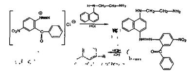 диазония, полученную из нитразепама, сочетают в кислой среде с N-1-нафтилэтилендиамином;