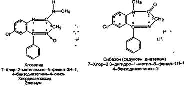 связанные атомы галогенов (хлор — в хлордиазепоксиде, сибазоне, нозепаме; хлор