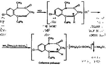 бензо-диазепинов образуется аммиак или метиламин (сиба-зон), окрашивающие