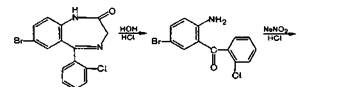 г феназепама кипятят с 10 мл раствора натрия гидроксида в течение 10 мин;