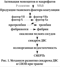 гемостаза не требуется. В самом общем виде патогенез ДВС-синдрома представлен