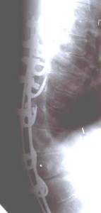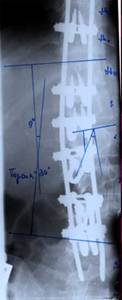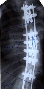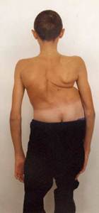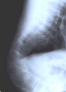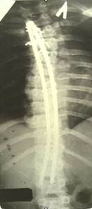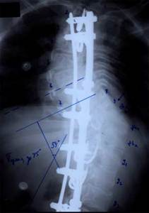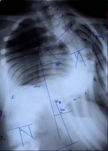 О неблагоприятном прогнозе свидетельствуют два обстоятельства: – первое – прогрессирование болезни. Это подтверждается изменением угла искривления позвоночника по сравнению с предыдущими снимками (вот здесь-то крайне важен "семейный альбом" ваших рентгенограмм); – второе – незаконченное формирование скелета (ростковые зоны костей еще не закрылись, о чем свидетельствует вышеупомянутый признак Риссера), а это может предполагать дальнейшее увеличение деформации. Рентгенологический признак завершенности прогрессирования сколиоза.Окончание оссификации апофизов гребней подвздошных костей в возрасте 16-18 лет. Задержка оссификации апофизов тел позвонков наблюдается как при идиопатическом (диспластическом) так и при паралитическом сколиозе на вогнутой стороне. На выпуклой стороне искривления характерно образование реберного горба (чем больше искривление тем больше острый угол реберного горба). Рентгенологический признак прогрессирования сколиоза.Начало периода оссификации кольцевых апофизов тел позвонков, т. е. с началом периода интенсивного роста скелета. Это, как правило, с 8 до 15-16 лет. Приведенные выше признаки прогрессирования сколиоза имеют существенное значение в диагностике этого заболевания и в выявлении наиболее неблагоприятно претекающих его форм. Раннее выявление таких форм позволяет своевременно прибегнуть к оперативному вмешательству. Глава 2.2 Четырехстепенная классификация сколиозаПервая степень. Клинически определяется небольшая ассиметрия частей корпуса (надплечий, лопаток), линия остистых отростков слегка искривлена. На выпуклой стороне искривления позвоночника может определяться небольшой мышечный валик. Появляются начальные признаки торсии позвонков. Рентгенологически угол искривления позвоночника до 10°. Вторая степень. Ассиметрия частей корпуса становится более выраженной, появляется небольшое отклонение корпуса в сторону. Мышечный валик четко определяется. Рентгенологически отмечается ясная торсия и небольшая клиновидная деформация позвонков. Угол искривления позвоночника от 10° до 25°. Третья степень. Ассиметрия частей корпуса увеличивается. Грудная клетка резко деформирована: сзади на выпуклой стороне дуги искривления позвоночника - задний реберно-позвоночный горб, спереди на вогнутой стороне - менее выраженный передний реберный горб. В поясничном разделе часто усилен лордоз. На рентгенограмме - выраженная торсия и клиновидная деформация позвонков и дисков. Угол искривления позвоночника от 25° до 40°. Четвертая степень. Деформация позвоночника и грудной клетки становится грубой и фиксированной. Угол искривления позвоночника более 40°. Глава 3 Лечение сколиоза Глава 3.1 Основные методы леченияЛечение сколиоза сводится к трем основным методам: мобилизация позвоночника, коррекция деформации и удержание коррекции. Все это достигается с помощью средств ЛФК или путем применения редрессирующих корсетов, гипсовых кроваток, специальных тяг либо комбинированными способами, включающими в себя все перечисленные выше средства. Основным методом лечения сколиоза в настоящее время принято считать комбинированный. В комплексной; терапии сколиотической болезни используют в основном корригирующие, асимметричные и симметричные упражнения. Корригирующие упражнения предусматривают 