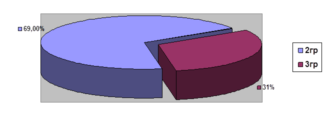 Профилактические осмотры Профилактические осмотры проводятся комиссией в составе: врач приюта, лор, окулист, хирург, невропатолог, эндокринолог, гинеколог. Цель осмотров – определить уровень физического и нервно – психического развития и составить план реабилитационных мероприятий с учетом выявленной патологии. Углублённый медосмотр проводится два раза в год, т.к. средний срок пребывания ребенка в приюте 1-3 месяца. Я, как врач приюта, провожу заключительный медосмотр с указанием групп здоровья, уровня физического развития, физкультурной группы. В план осмотра так же включаем анализы крови, мочи, кал я\г (при поступлении и в дальнейшем по показаниям), анализ крови на ВИЧ, RW. Распределение детей по группам здоровья указаны в следующих диаграммах.