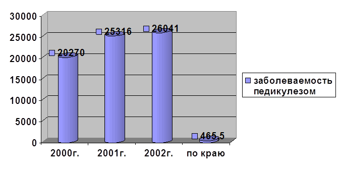 Наглядным примером отражения социально-экономического неблагополучия детей, поступающих в приют, является показатель заболеваемости педикулезом. Этот показатель не только вырос за последние годы, но и превышает краевой показатель в десятки раз. Заболеваемость педикулезом Таблица 5.