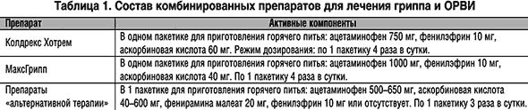 Реферат: Современные средства патогенетической и симптоматической терапии гриппа и ОРЗРеферат: Современные средства патогенетической и симптоматической терапии гриппа и ОРЗО.И. Киселев, И.А. Васильева НИИ гриппа РАМН, Санкт-Петербург Введение Острые респираторные инфекции относятся к наиболее обширной группе заболеваний, имеющих устойчивый характер и широкое распространение в течение многих столетий [1]. К возбудителям ОРЗ и гриппа относятся риновирусы, аденовирусы, парагрипп I, II и III типов, вирусы гриппа, респираторно–синцитиальный вирус, коронавирусы. Грипп и ОРЗ составляют до 40% всех заболеваний взрослых, зарегистрированных в поликлиниках, и нередко – более 60% всей инфекционной патологии детей [7]. Не оставляя стойкого иммунитета, грипп и другие ОРЗ могут приводить к формированию хронических процессов в легких и соматической патологии, включая поражение сердечно–сосудистой, центральной нервной системы, почек. Во время эпидемий гриппа отмечается значительный рост числа больных с тяжелыми и осложненными формами заболевания, среди которых ведущим остается пневмония [5]. Летальность при гриппе у госпитализированных больных, несмотря на определенные успехи интенсивной терапии, остается достаточно высокой (от 0,6 до 2,5%), причем 50% смертности приходится на заболевания сердечно–сосудистой системы и до 20% – на болезни легких [2,3]. Вирус гриппа, являясь пневмо– и эпителиотропным, при аспирации всегда локализуется в дыхательных путях, главным образом в верхних отделах, которые и являются местом развития основных патологических процессов, специфических для гриппа [8]. Внутриклеточное размножение вирусов приводит к структурным изменениям, гибели и отторжению клеток, что клинически проявляется катаральным воспалением дыхательных путей. Поражая клетки в очагах воспаления, вирус усиливает воспалительную реакцию, что способствует его быстрому распространению по трахее и бронхам. В результате поражения сосудов в виде капилляротоксикоза из мест первичной локализации вирус попадает в кровеносное русло и поражает макрофаги периферической крови, с которыми может быть разнесен по всему организму. В результате возникает типичный клинический симптомокомплекс: сочетание местных (кашель, заложенность носа, першение в горле, боли за грудиной) и общетоксических симптомов в виде лихорадки с ознобом, общей слабости, адинамии, головных болей, миалгий и артралгий, болей в глазных яблоках. Поэтому основная задача патогенетической и симптоматической терапии гриппозной инфекции состоит в том, чтобы не допустить развития диссеминации процесса, сопровождающейся выраженными проявлениями основных клинических симптомов. Однако применение моносимптомных препаратов (адреномиметиков, местных анестетиков, нестероидных противовоспалительных и антигистаминных средств) и их различных сочетаний при лечении данной патологии остается недостаточно эффективным, поскольку они не могут обеспечить комплексного воздействия на все звенья патогенеза и, соответственно, снять весь симптомокомплекс. Таким образом, все вышесказанное обусловливает целесообразность использования в терапии гриппа и других ОРЗ комплексных многокомпонентных препаратов, обеспечивающих усиление фармакологического эффекта за счет одномоментного приема различных по 