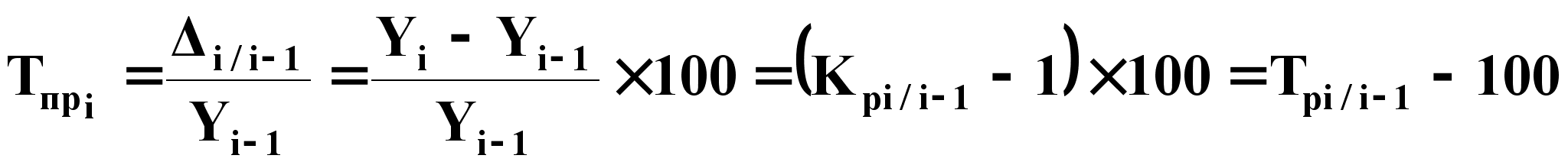 Здесь Кцеп – цепные коэффициенты роста; Kбаз – базисный коэффициент роста. Средний темп прироста (%) определяется по единственной методологии: