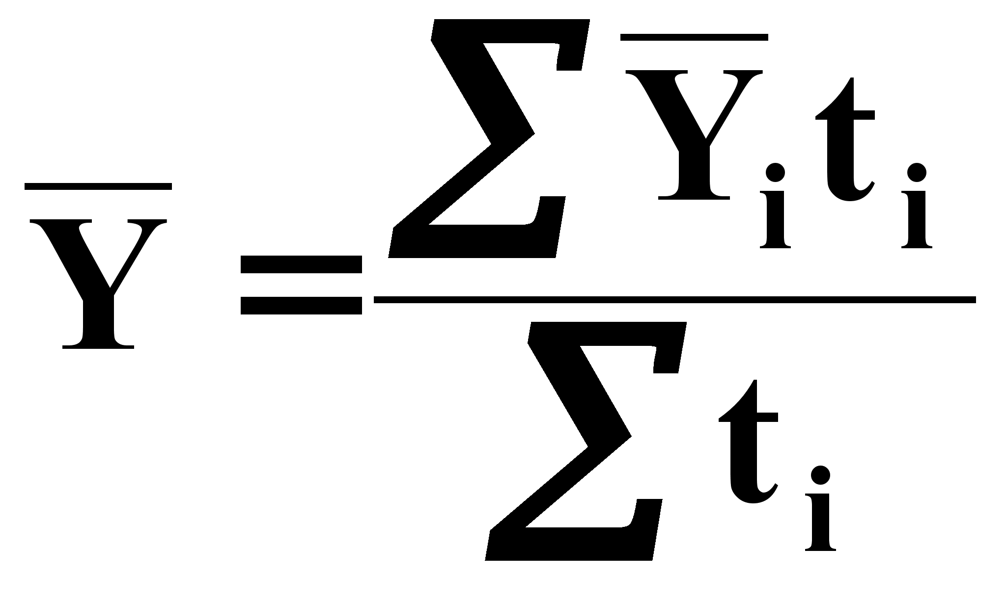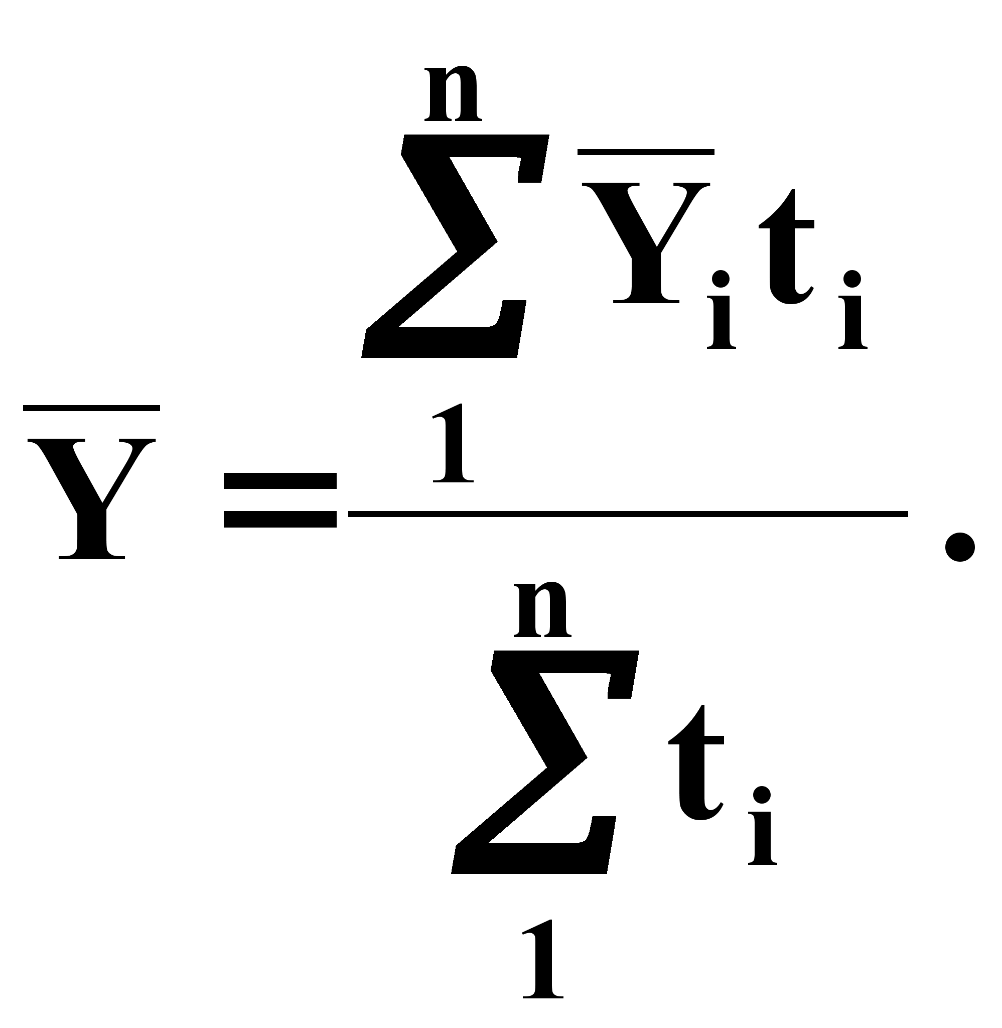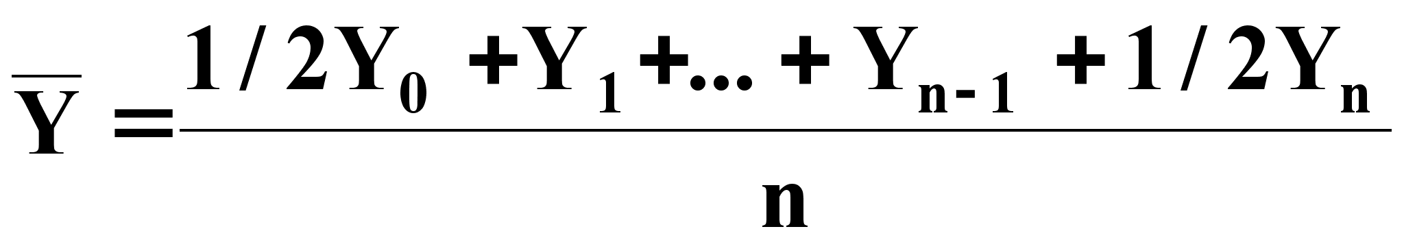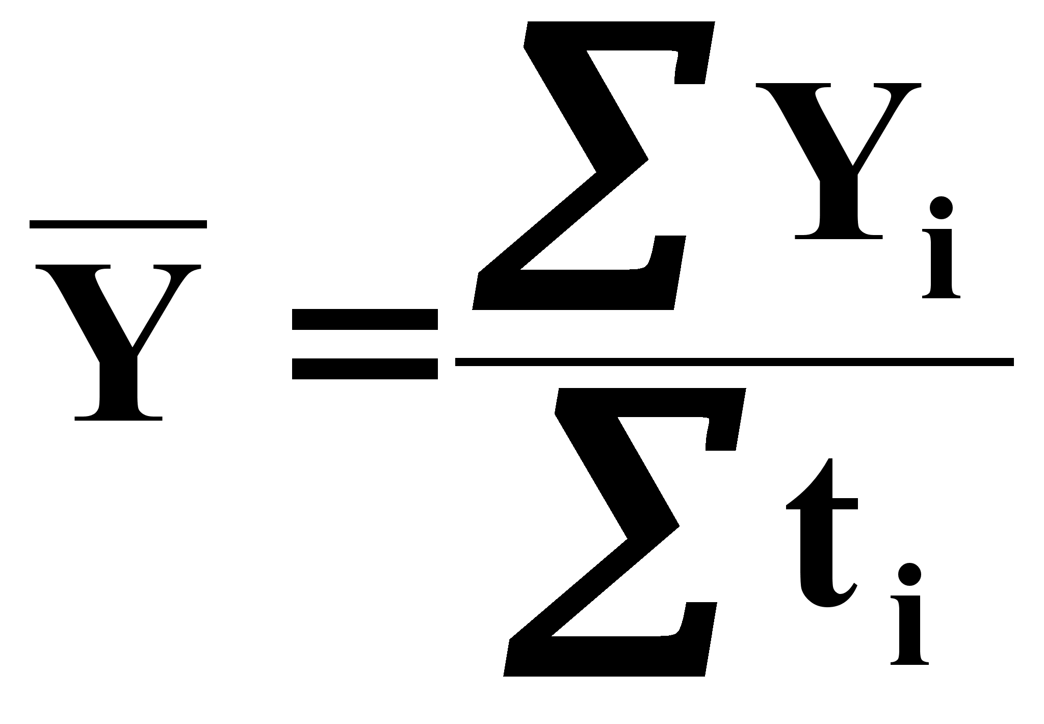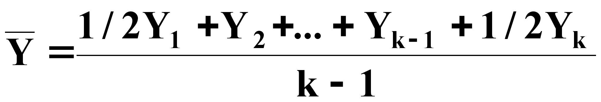 где n или (n +1) – общая длина временного ряда или общее число равных временных отрезков, каждому из которых соответствует свой уровень Y, (i = 1, 2, ..., n или i = 0, 1,2, ..., n). Если в интервальном ряду отрезки имеют неравную длительность, то средний уровень рассчитывается по формуле средней арифметической: