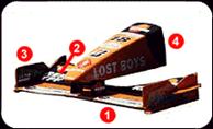 Заднее антикрыло (см. Рис. 2.8) состоит из нескольких элементов. Угол наклона этих элементов создает прижимную силу различной величины.