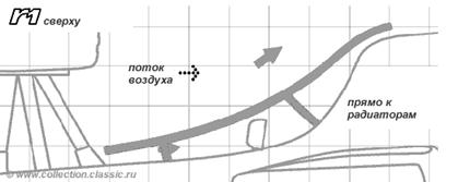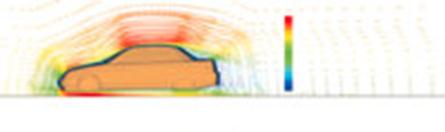 Рис. 2.13 Воздухозаборник 2.5. Слипстрим.«Рубенс Баррикелло на стартовой прямой догоняет Дэвида Култхарда и перед первым поворотом обходит его классическим слипстримом!» Нечто подобное можно услышать в репортажах о Формуле-1. Что такое слипстрим? Как этот прием помогает гонщику обогнать своего соперника? Английское выражение slip stream в дословном переводе означает «разреженный поток». А в русском языке есть несколько аналогов термина «слипстрим» — «спутный след», «воздушный мешок», «аэродинамическая тень»... Несмотря на кажущуюся разницу, обозначают они одно и то же — разрежение воздуха, которое образуется позади движущегося автомобиля (см. Рис. 2.14, зона разрежения, которая и образует слипстрим, показана синими цветом позади автомобиля, чем «теплее» цвет, тем выше давление в этой зоне).