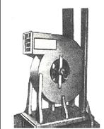 Рис. 3.2 Центрифуга Бенджамина Робинса. Вращение осуществлялось при помощи груза, тянущего под своим весом веревку, намотанную на шпиндель. При этом достигались скорости несколько метров в секунду. Закрепляя на конце рычага различные предметы – пирамиду, лист металла и т. п., Робинс установил несостоятельность существующих теорий воздушного сопротивления. «Различные формы, даже если предположить, что они имеют одинаковую площадь, не всегда обладают тем же воздушным сопротивлением или обтекаемостью». Явно сложное отношение между обтекаемостью, формой, положением модели и скоростью воздуха шло вразрез с простой теорией, выдвинутой Ньютоном. Подобные эксперименты проводил также сэр Джорж Кайли (1773 -1857). Его аппарат позволял достичь скоростей в 6 м/с. Опираясь на свои эксперименты, Кайли в 1804 г. создал и запустил беспилотный планер с площадью крыльев 18,5 кв. м., и уже в 1852 г. у него был готов проект триплана, имеющий многие характеристики современных самолетов. Но основной вклад Кайли состоял в том, что он первым отметил, что «двигатель нужно использовать лишь для движения вперед, а подъемную силу будут создавать крылья». До этого считалось, что крыльями необходимо взмахивать, как это делают птицы. До конца XIX века рычажное приспособление оставалось практически единственным устройством для исследования аэродинамики. Но ряд существенных недостатков и сложностей этой конструкции привел к появлению более совершенного инструмента – аэродинамической трубы. Как принято считать, Франк Уинхэм (1824-1908), член Совета авиационного общества Великобритании, был первым человеком, кто спроектировал и провел первые эксперименты с АТ в 1871 г. Сначала Уинхэм также пытался использовать «рычажную центрифугу», но неудачный опыт побудил его к тому, чтобы принудить Совет к увеличению финансирования для строительства АТ. Это была труба более 3,5 м в длину и сечением 116 см2 (Рис. 3.3). Вентилятор, обдувавший модели, приводился в движение паровым двигателем.