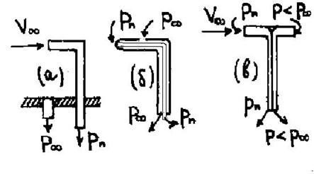 Рис. 1.3 Трубки для измерения давлений и скоростей потока. Впервые трубки были применены в 1723 году французским ученым Анри Пито, для измерения скорости потока в реке Сене. Он показал, что обычная стеклянная трубка, помещенная в поток (см. Рис. 1.4), позволяет определить полный напор и величину скорости.