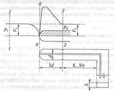 Разность (P0 – P1) между полным и статическим давлением потока можно измерить манометром, если в критической точке (0-0) на затупленном носике трубки проделать отверстие и тонкой трубкой соединить его с одним коленом манометра, а в статическом сечении (2-2) прорезать щель, и общую с ней полость самой трубки соединить гибкой трубкой со вторым коленом манометра (см. Рис. 1.6).