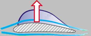Рис. 1.13 Подъемная сила крыла. Величины давлений на поверхность для различных тел определяют в лабораториях путем продувки в аэродинамических трубах. Полученные значения давлений для каждой точки наносят на специальные графики (Рис 1.14) Кроме сил давления, на поверхность крыла по касательной к ней действуют силы трения, которые обусловлены вязкостью воздуха и целиком определяются процессами, происходящими в пограничном слое.