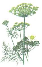 Родовое название от греческого “anethon” — укроп; латинское graveolens — сильно пахнущий. Травянистое однолетнее растение высотой 40—120 см, с сильным пряным запахом. Корень тонкий, веретеновидный, маловетвистый. Стебель одиночный, прямой, ветвистый, тонкобороздчатый, с узкими чередующимися беловатыми и зелеными продольными полосками. Листья очередные, трижды- или четыреждыперисторассеченные, яйцевидные в очертании, дольки листа линейно-нитевидные, нижние на черешках, при основании расширенных в широкопленчатые влагалища, длиной до 2 см, верхние сидячие на влагалищах, более мелкие, нитевидные, менее рассеченные. Соцветие расположено на верхушках стеблей в виде сложного зонтика до 15 см в поперечнике, с 30—50 гладкими, почти равными по длине лучами. Чашечка в виде 5 очень коротких зубцов. Венчик из 5 желтых лепестков, суженных на верхушке в плоскую завернутую внутрь слегка выемчатую дольку. Плод — яйцевидная или широкоэллиптическая серовато-коричневая двусемянка, длиной 3—5 мм, шириной до 4 мм, сжатая со спинки. Запах сильный, ароматический, своеобразный, вкус сладкий, пряный, немного жгучий. Цветет в июне — июле, плоды созревают в августе — сентябре. Родина — страны Средиземноморья. Разводится как огородное растение повсюду. В одичавшем состоянии растет в странах Балтии, на юге европейской части России, на Кавказе, в Средней Азии. Растет в основном около жилья, на окраинах полей, у дорог. В качестве лекарственного сырья используют плоды. Заготавливают, когда созревают 50—60% плодов (июль). Растения вырывают руками или срезают и связывают в снопы, которые сушат под навесами с хорошей вентиляцией. Затем снопы обмолачивают и на решетках или веялках отделяют плоды от примесей. Во всех частях укропа имеется эфирное масло, в состав которого входит до 50% карвона, до 30% диллапиола, а также фелландрен и лимонен. В значительном количестве присутствуют витамины — витамин С, витамины группы В, Р, PP. Найдены пектиновые вещества, минеральные соли (железо, фосфор, кальций, калий). Плоды укропа содержат до 4% эфирного масла, до 20% жирного масла. В свежей зелени присутствуют витамин С, каротин, флавоноиды, среди них кверцетин, изорамнетин, кемпферол. В традиционной медицине древних греков укроп использовали как успокаивающее, ветрогонное, мочегонное, отхаркивающее, противовоспалительное, лактогонное и сокогонное средство. В одном из египетских папирусов говорится, что укроп применяется как средство от головной боли и для “смягчения” кровеносных сосудов. Диоскорид рекомендовал укроп для лечения глазных болезней, а Гален — для облегчения болезненного мочеиспускания. Древние врачи считали, что укроп полезен при астме, слабости желудка, печени и селезенки, камнях в почках и мочевом пузыре, болях в груди и спине. В “Геопониках” отмечается, что вино, настоянное на укропе, возбуждает аппетит, укрепляет желудок, является мочегонным. Современная медицина использует укроп в свежем виде (салаты, укропная вода) и в форме препаратов (настои, отвары). Укропную воду готовят из укропного масла из расчета 1 часть укропного масла на 1000 частей воды. Доказано, что эти препараты снижают кровяное давление, расслабляют тонус гладкой мускулатуры, уменьшают перистальтику кишечника, расширяют кровеносные сосуды, увеличивают диурез. Водный настой семян плодов готовят так: столов