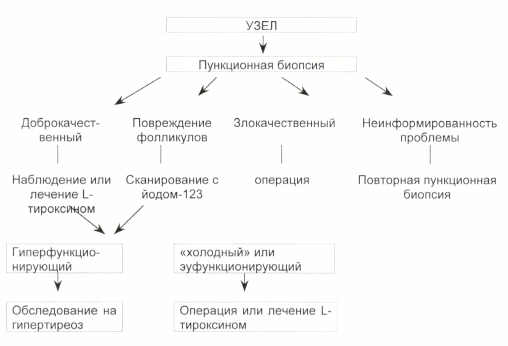 Рис. 12. Алгоритм ведения больных с одиночным узлом щитовидной железы (Singer P.A., 1996)