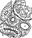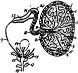 Что изображено на рисунке'? а) строение яичника б) строение семенника в) строение почки г) строение печени