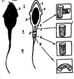 Что изображено на рисунке? а) юкстагломерулярный аппарат почки б) простагландиновый аппарат почки в) почечное тельце г) проксимальный отдел нефрона ТЕСТОВЫЕ ЗАДАНИЯ. МУЖСКАЯ ПОЛОВАЯ СИСТЕМА. 1. Какие функции выполняет мужская половая система? а) генеративную и эндокринную б) выделительную и эндокринную в) дыхательную и защитную г) защитную и рецепторную 2. Из каких источников развивается мужская половая система? а) полового валика, первичной почки, мезенхимы б) полового валика предпочки, энтодермы в) мюллерового протока, миотома, полового валика г) вторичной почки, полового валика, мезенхимы 3. Какие органы мужской половой системы развиваются из мочеполового синуса? а.) наружные половые органы б) семенник в) придаток г) мужская маточка 4. Что происходит в извитых канальцев семенника? а) сперматогенез б) овогенез в) фагоцитоз г) пиноцитоз 5. Сколько извитых канальцев насчитывается в семенниках зрелого мужчины и какова их общая длина? а) 300-450 и 200-300 метров б) 600-800 и 100-200 метров в) 100-200 и 200-3000 метров г) 800-1000 и 500-800 метров 6. Какие функции выполняет поддерживающая клетка Сертоли? а) эндокринную б) фагоцитарную в) трофическую г) выделительную 7. Какую функцию выполняют интерстициальные клетки Лейцита? а) эндокринную б) фагоцитарную в) трофическую г) газообменную 8. Каким способом делятся сперматогонии в I периоде размножения при Сперматогенезе? а) митоз б) мейоз в) амитоз г) почкованием 9. Сколько делений происходит в периоде созревания при сперматогенезе? а)одно б) два в) три г) четыре 10. Что происходит со сперматидой в IV периоде - формировании при сперматогенезе? а) спермиогенез б) овогенез в) гистогенез г) органогенез 11. Какое действие на сперматогенез оказывает высокая температура? а) нарушает спермиогенез б) нарушает размножение в) созревание г) рост 12. Какой гормон секретирует интерстициальная клетка Лейдига? а) прогестерон б) тестестерон в) эстроген г) окситоцин 13. Что развивается из канальцев первичной (туловищной) почки при образовании мужской половой системы? а) извитые канальцы семенника б) сеть семенника в) семявыносящий проток г) семявыносящие канальца. 14. Что развивается из Вольфово протока при закладки мужской половой системы? а) извитые канальца семенника б) сеть семенника в) канал придатка г) прямые канальца. 15. Из какого зачатка развиваются извитые канальца семенника? а) из канальцев первичной (туловищной) почки б) из Вольфого протока в) из подовых шнуров г) из канальцев предпочки (головной) почки. 16. Назовите месторасположение первичных половых (гонобластов) клеток. а) аллантоис б) амнион в) желточный мешочек г) сероза. 17. Как осуществляется миграция гонобластов в половой валик? а) током крови и за счет псевдоподий б) током крови и первичной мочи в) током крови и вторичной мочи г) реотаксисом и разностью зарядов. 18. Что произойдет, если гонобласт не попадает в половой валик? а) половая система будет развиваться на своем месте б) половая система не будет развиваться в) половая система будет развиваться не на своем месте г) не будет развиваться выделительная система. 19. Каков хромосомный набор у сперматогониев? а) 23хр. б) 46хр. в) 92хр. г)28хр. 20. Каков хромосомный набор у пресперматид (сперматоцит II порядка)? а) 23 6) 46 в) 92 г) 28. 21. Каков хромосомный набор у сперматид? а) 23 б) 46 в) 92 г) 28. 22. Какие половые хромосомы содержатся в сперматозоидах? а) Х и У б) Х и Х в) У и 