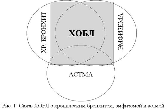 Реферат: Хронический бронхитРеферат: Хронический бронхитВведение. В XXI век человечество входит с новой проблемой – резкое увеличение числа хронических заболеваний легких. В условиях ухудшающейся экологии, распространения табакокурения, увеличивается не только распространенность этих заболеваний, но и летальность (6). По прогнозам ВОЗ, в XXI веке летальность вследствие патологии органов дыхания будет занимать вторую строку в общей структуре причин смерти. Так, по данным American Thoracic Society, с 1982 года число больных хронической обструктивной болезнью легких (ХОБЛ) к 1995 году возросло на 41,5% и составило 14 млн. человек, причем в 12,5 млн. случаев причиной был хронический обструктивный бронхит (1). Особенное неблагополучие этой тенденции придают данные о поздней диагностике такого тяжелого заболевания, как ХОБЛ. European Respiratory Society (ERS) указывает, что лишь в 25 % случаях заболевание диагностируется своевременно (2). Как уже указывалось, наиболее часто ХОБЛ развивается на фоне хронического обструктивного бронхита. Это привело к терминологическим неясностям и выраженной разнородности в формировании диагноза. В каких же случаях правомерна постановка диагноза хронического бронхита. По определению ВОЗ, состояние выражающееся в наличии продуктивного кашля на протяжении, по крайней мере, 3 месяцев в течение 2 лет при отсутствии других заболеваний, которые могут вызывать указанные симптомы, необходимо рассматривать как хронический бронхит (3). А хронический обструктивный бронхит – это заболевание, характеризующееся хроническим диффузным неаллергическим воспалением бронхов, ведущее к прогрессирующему нарушению легочной вентиляции по обструктивному типу и проявляющееся кашлем, одышкой и выделением мокроты, не связанными с поражением других органов и систем (4). Строгого определения ХОБЛ не существует, в связи с чем определение носит описательный характер: хроническая обструктивная болезнь легких – заболевание, характеризующееся снижением максимального экспираторного потока и замедлением форсированного опорожнения легких, которые медленно прогрессируют и являются необратимыми (2). Довольно распространенная классификация, в которой выделялись хронический простой, обструктивный, гнойный и гнойно-обструктивный варианты за последние годы претерпела изменения и на первый план вышло разделение бронхитов по наличию обструкции, так как от этого фактора в первую очередь зависят тяжесть и прогноз заболевания. Более того, хронический обструктивный бронхит (ХОБ) часто стал подменяться термином ХОБЛ, что не вполне верно. Конечно, наиболее частой причиной ХОБЛ является ХОБ (1), но дело в том, что ХОБЛ кумулятивное понятие, отражающее состояние с медленно и необратимо прогрессирующей обструкцией дыхательных путей, в основе которой лежит не только воспаление и склероз, свойственные для бронхита, но и деструкция ацинарной ткани с потерей эластических свойств легких, что характерно для эмфиземы. ХОБЛ является собирательным понятием и объединяет в себе такие заболевания как: хронический обструктивный бронхит, эмфизему легких и бронхиальную астму тяжелого течения. Видимо, более верно говорить о том, что ХОБЛ является заключительным этапом любой обструктивной патологии (рис.1). Именно поэтому выделение ХОБ имеет важное значение, позволяя при ранней ди