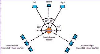 звуковых волн человека, тогда Обратным преобразованием Фурье функции H(f) является функция H(t), представляющая собой HRIR (Head-Related Impulse Response). Таким образом, строго говоря, HRIR это коэффициент (он же есть отношение давлений, т.е. безразмерен; это просто удобный способ загнать в одну букву в формуле очень сложный параметр), который определяет воздействие на барабанную перепонку, когда звуковой импульс испускается источником звука, за исключением того, что мы сдвинули временную ось так, что t=0 соответствует времени, когда звуковая волна в "free field" достигнет центра головы слушателя. Также мы масштабировали результаты таким образом, что они не зависят от того, как далеко источник звука расположен от человека, относительно которого производятся все измерения. Если пренебречь этим временным сдвигом и масштабированием расстояния до источника звука, то можно просто сказать, что HRIR - это давление воздействующее на барабанную перепонку, когда источник звука является импульсным. Напомним, что интегральным преобразованием Фурье функции HRIR является HRTF функция. Если известно значение HRTF для каждого уха, мы можем точно синтезировать бинауральные сигналы от монофонического источника звука (monaural sound source). Соответственно, для разного положения головы относительно источника звука задействуются разные HRTF фильтры. Библиотека HRTF фильтров создается в результате лабораторных измерений, производимых с использованием манекена, носящего название KEMAR (Knowles Electronics Manikin for Auditory Research, т.е. манекен Knowles Electronics для слуховых исследований) или с помощью специального "цифрового уха" (digital ear), разработанного в лаборатории Sensaura, располагаемого на голове манекена. Понятно, что измеряется именно HRIR, а значение HRTF получается путем преобразования Фурье. На голове манекена располагаются микрофоны, закрепленные в его ушах. Звуки воспроизводятся через акустические колонки, расположенные вокруг манекена и происходит запись того, что слышит каждое "ухо". HRTF представляет собой необычайно сложную функцию с четырьмя переменными: три пространственных координаты и частота. При использовании сферических координат для определения расстояния до источников звука больших, чем один метр, считается, что источники звука находятся в дальнем поле (far field) и значение HRTF уменьшается обратно пропорционально расстоянию. Большинство измерений HRTF производится именно в дальнем поле, что существенным образом упрощает HRTF до функции азимута (azimuth), высоты (elevation) и частоты (frequency), т.е. происходит упрощение, за счет избавления от четвертой переменной. Затем при записи используются полученные значения измерений и в результате, при проигрывании звук (например, оркестра) воспроизводится с таким же пространственным расположением, как и при естественном прослушивании. Техника HRTF используется уже несколько десятков лет для обеспечения высокого качества стерео записей. Лучшие результаты получаются при прослушивании записей одним слушателем в наушниках. Наушники, конечно, упрощают решение проблемы доставки одного звука к одному уху и другого звука к другому уху. Тем не менее, использование наушников имеет и недостатки. Например: · Многие люди просто не любят использовать наушники. Даже легкие беспроводные наушники могут быть обременительны. Наушники, обеспечивающие наилучшую акустику, могут быть чре