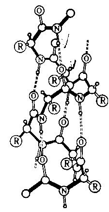 остатков и стабилизируется водородными связями между пептидными и боковыми
