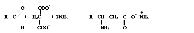 кислоты конденсацией альдегида с малоновой кислотой и присоединение аммиака: