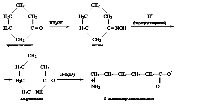 Бекмановская перегруппировка оксимов циклических кетонов. Наибольшей практический интерес представляет перегруппировка оксима циклогексанона: