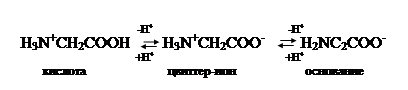 2. В молекулах аминокислот содержатся две группы с прямо противоположными свойствами: карбоксильная группа-кислотная, и аминогруппа с основными свойствами. Поэтому они обладают одновременно и кислотными и основными свойствами. Как кислоты, аминокислоты образуют со спиртами сложные эфиры, а с металлами и основаниями-соли: