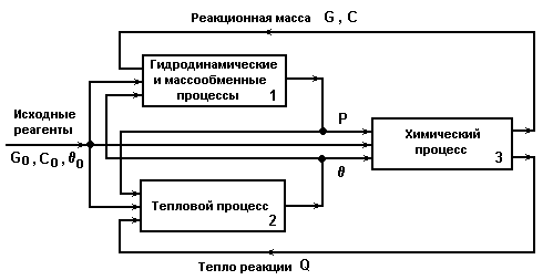 θ - температура; Р - давление; Сi - состав реакционной смеси; tпр - время пребывания реакционной смеси в аппарате.