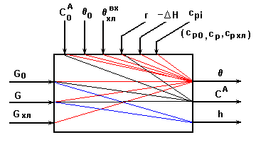 Информационная схема реактора на основе балансовой модели.