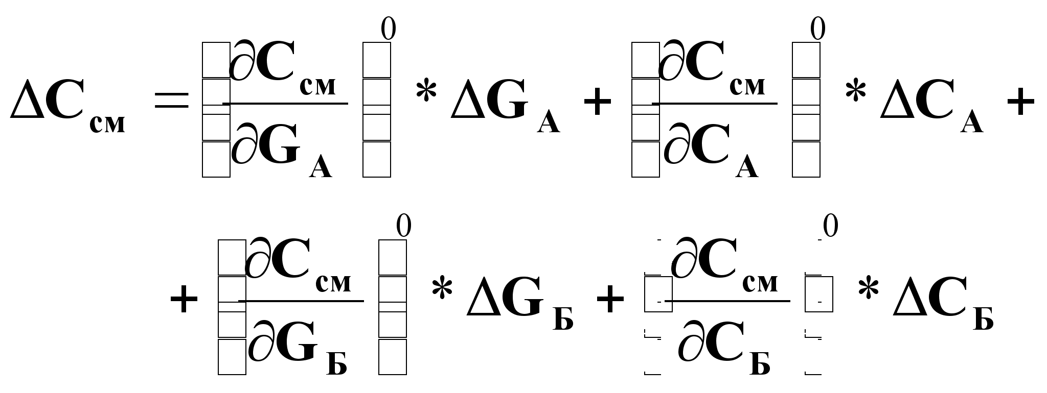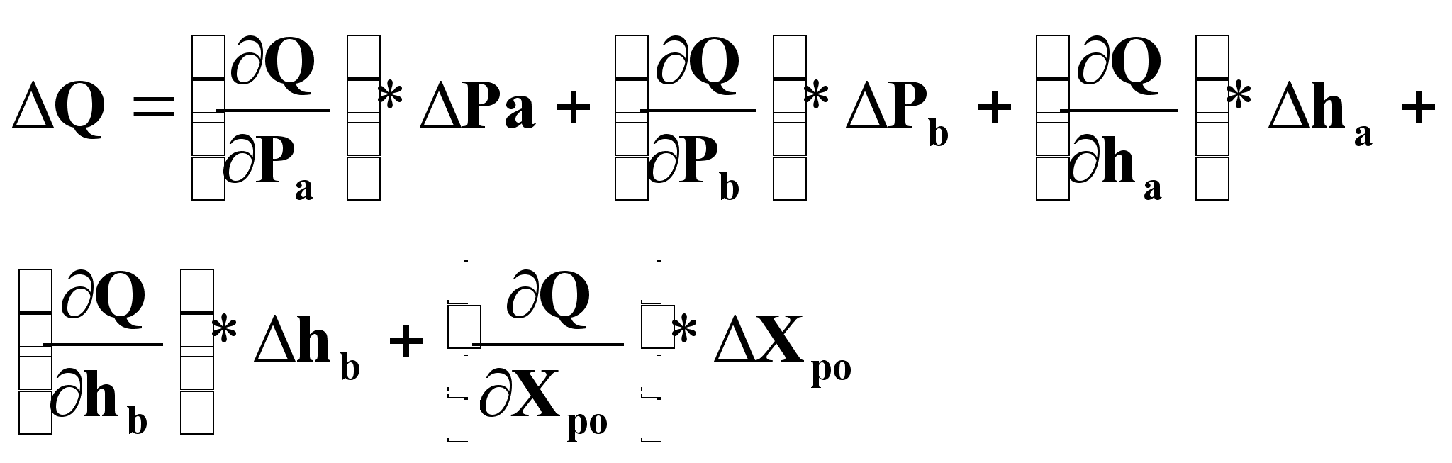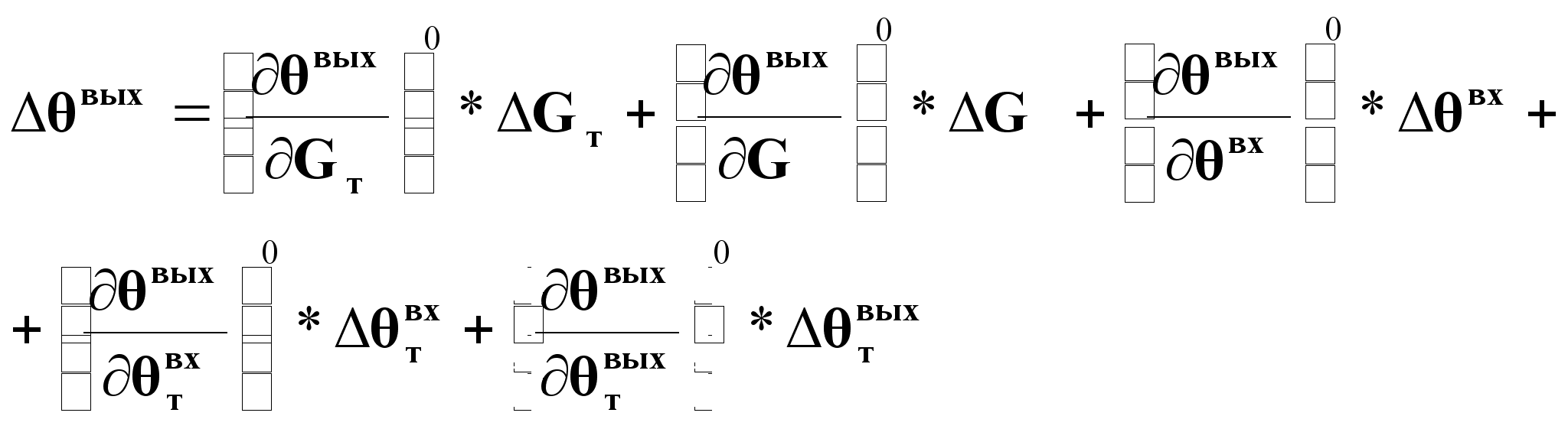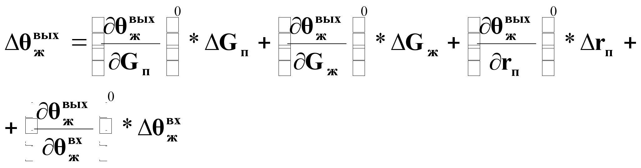 Линеаризованное представление приращения выходной переменной через приращения всех возможных входных переменных:
