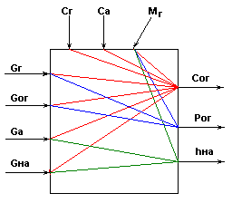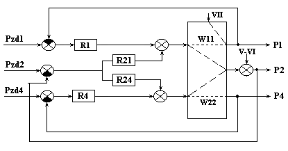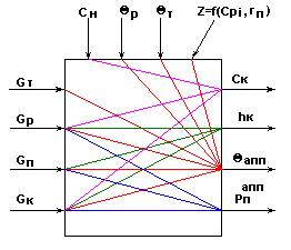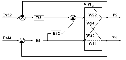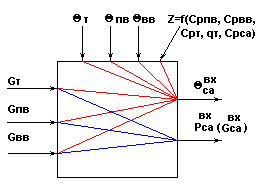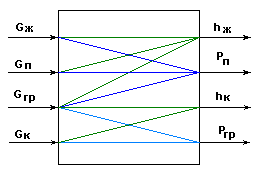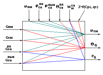 Рис.8. Информационная схема верха колонны как многосвязного объекта по в и pв