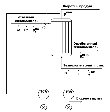 Информационная схема подогревателя потока питания как объекта управления п0