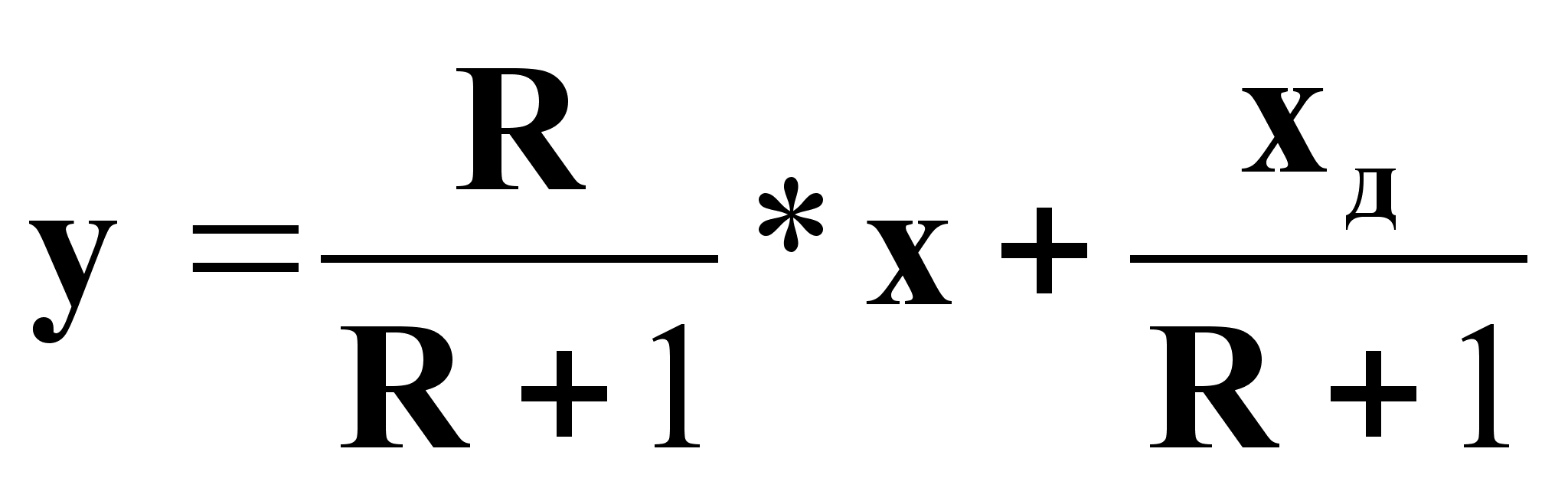 где y, x - составы паровой и жидкой фаз верха колонны, молярные доли; xд - состав дистиллята. Обозначим: