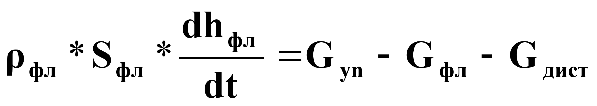 где фл - плотность флегмы , кг/м3 ; Sфл - сечение флегмовой емкости , м2 ; hфл - уровень флегмы , м; Gyn, Gфл, Gдист - массовые расходы, кг/с.