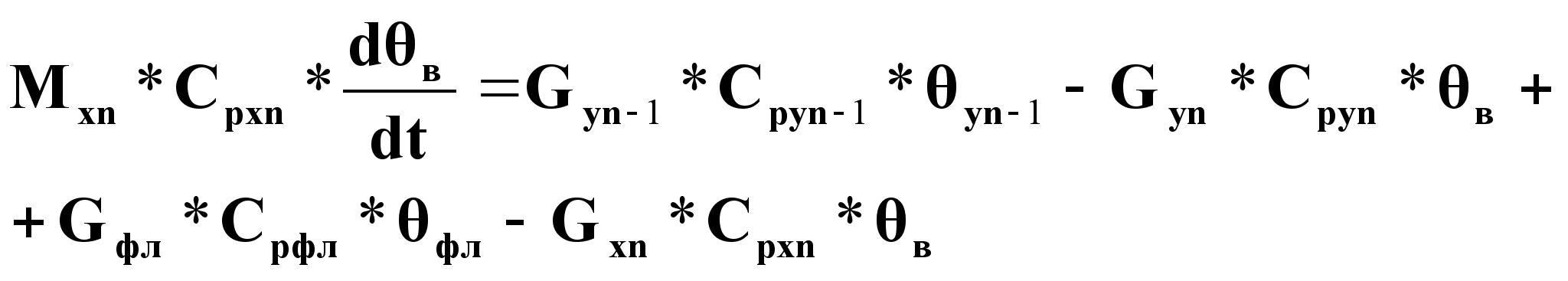 Gyn-1*Cpyn-1 *yn-1 + Gфл*Cрфл *фл = Gyn *Cpyn *в + Gxn *Cpxn *в (12).
