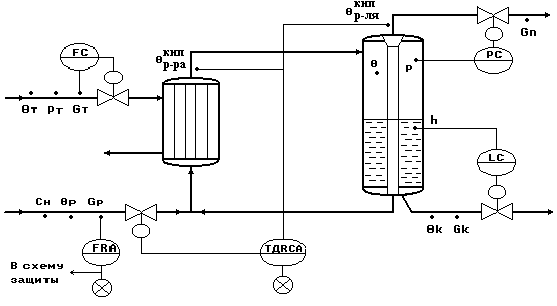 Рис.10. Типовая схема автоматизации процесса ректификации.