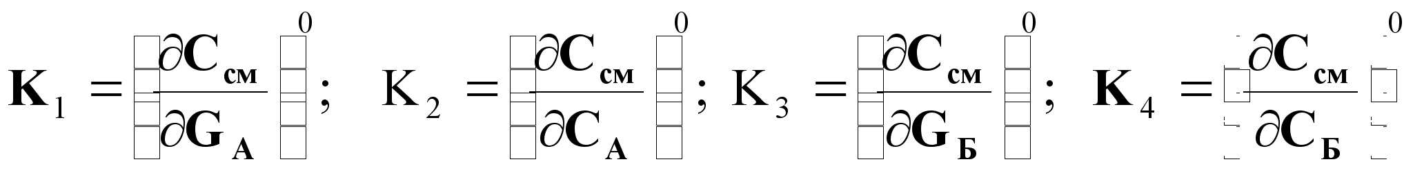 Начальные условия для вывода передаточной функции по каналу управления GA – Cсм :