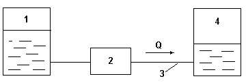 Рис.1. Из емкости 1 насосом 2 по трубопроводу 3 жидкость перекачивается в емкость 4. 2. Показатель эффективности процесса - расход Q. 3. Цель управления процессом Q=Qзд. 4. Анализ типовой схемы как объекта управления: Основные элементы, подлежащие анализу - трубопровод 3 и насос 2. Основные параметры трубопровода как объекта управления.